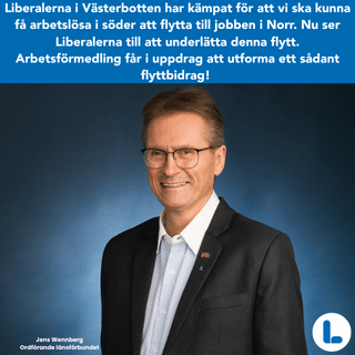 Liberalerna i Västerbotten är riktigt glad att vi nu efter en längre tids arbete ser att vi fått gehör för att ett flyttstöd ska införas. Arbetsförmedlingen har nu fått i uppdrag att utforma ett sådant. Detta ska underlätta för arbetslösa i södra Sverige...